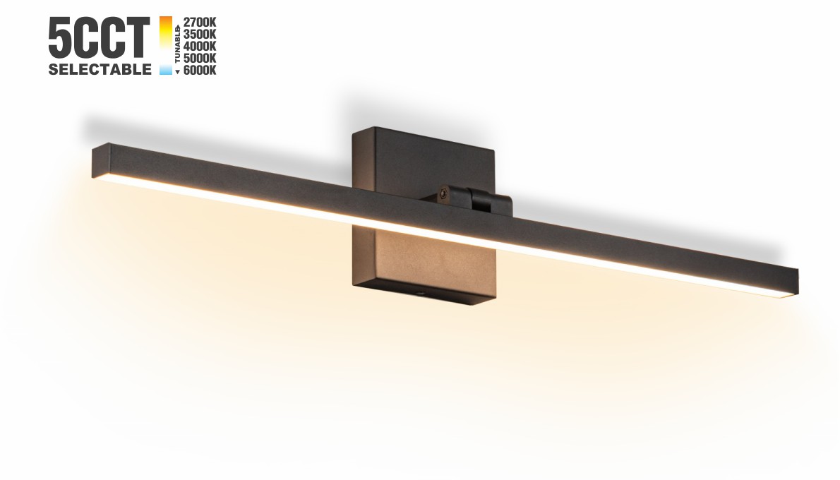 This minimalistic contemporary approach to LED vanity lighting will be the standard for both residential and commercial applications. The light engine features a high quality dimmable driver with multi volt input and high color rendering LEDs for the ultimate vanity lighting with 5CCT dip switch mounted on the mounting base.cETLus listed and Damp location rated. |