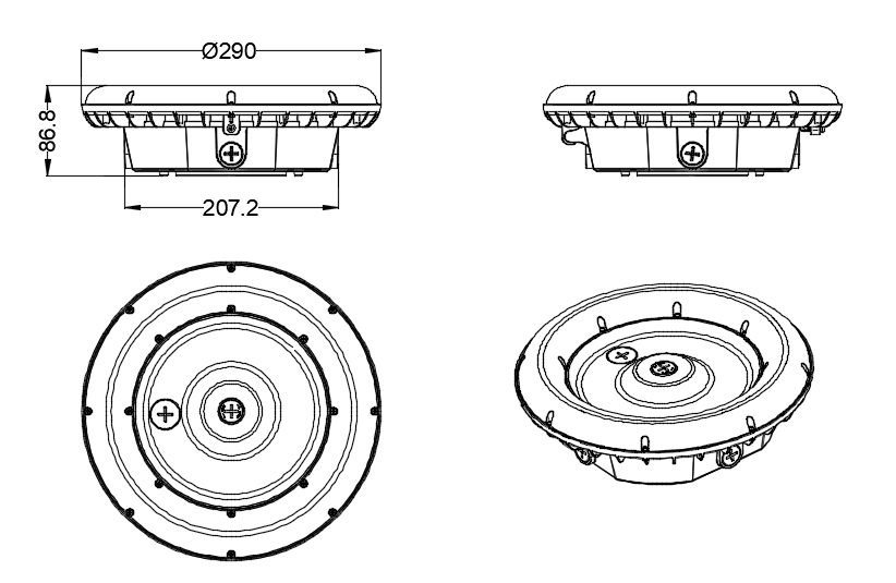 This product is a low-power garage light series with high cost-effectiveness. Adopting optical lenses, circular light emission around the edges, and a soft and uniform light spot. Compliant with DLC Premium energy efficiency standards. Emergency power supply can be installed, and clients can install plug-in sensors themselves. Numerical value: 40W/60W/80W,35K/40K/50K; 60W/80W/100W,35K/40K/50K